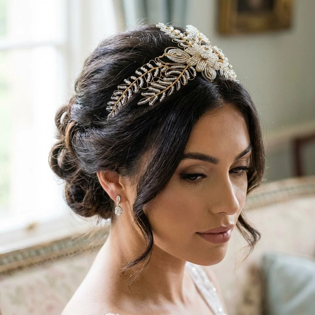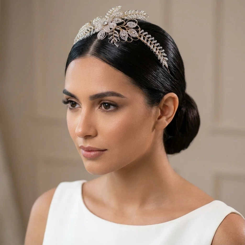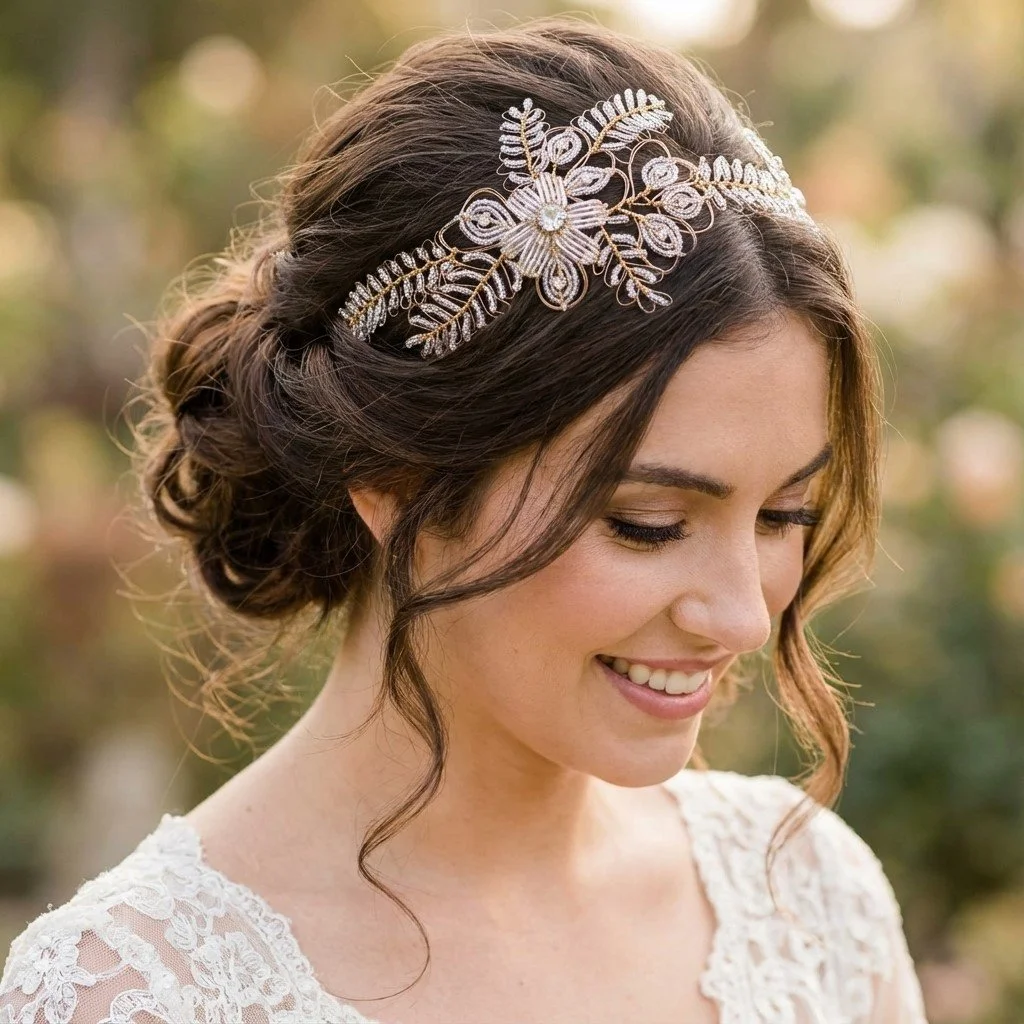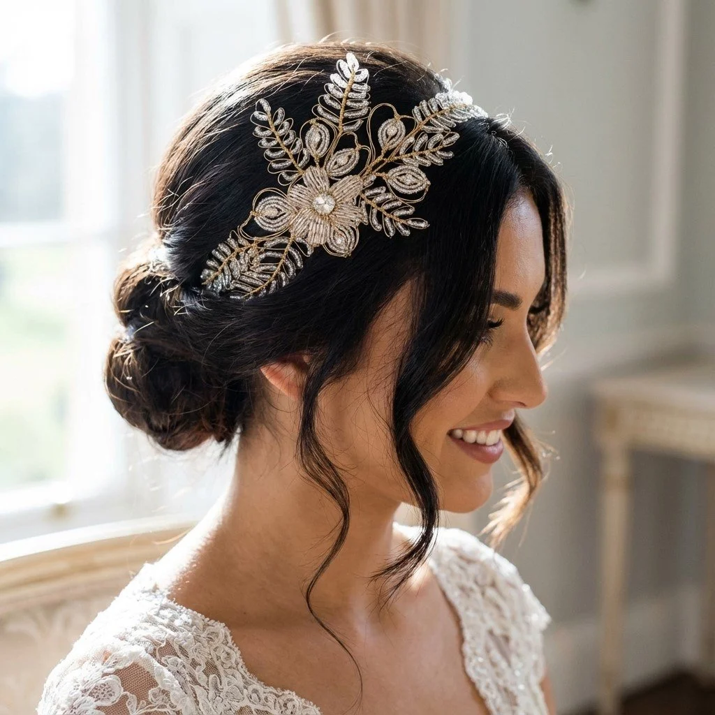 Simple note: Some headpieces and accessories are displayed on real clients and real brides as well as AI models to help you visualise them within styled hair to help you to enjoy shopping on this site.