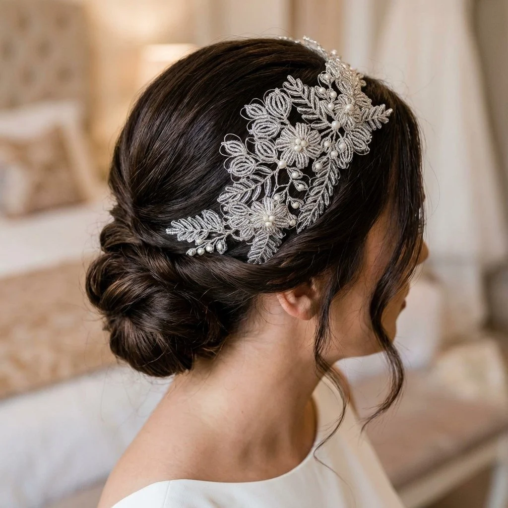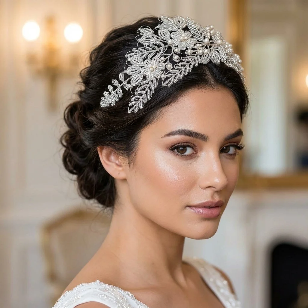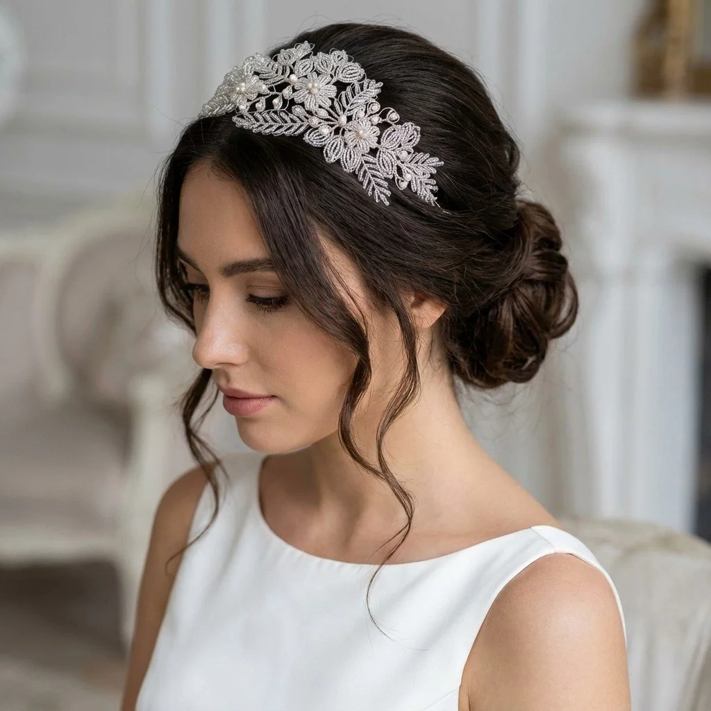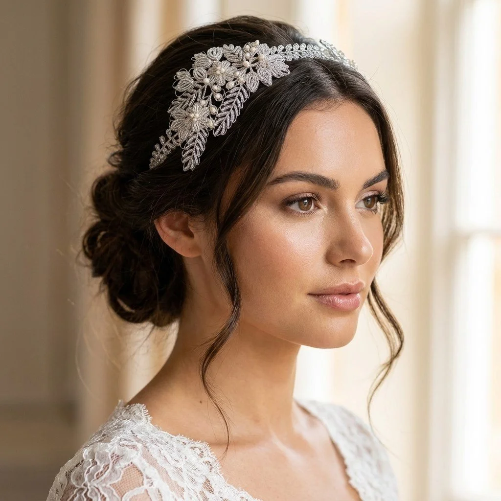 Simple note: Some headpieces and accessories are displayed on real clients and real brides as well as AI models to help you visualise them within styled hair to help you to enjoy shopping on this site.